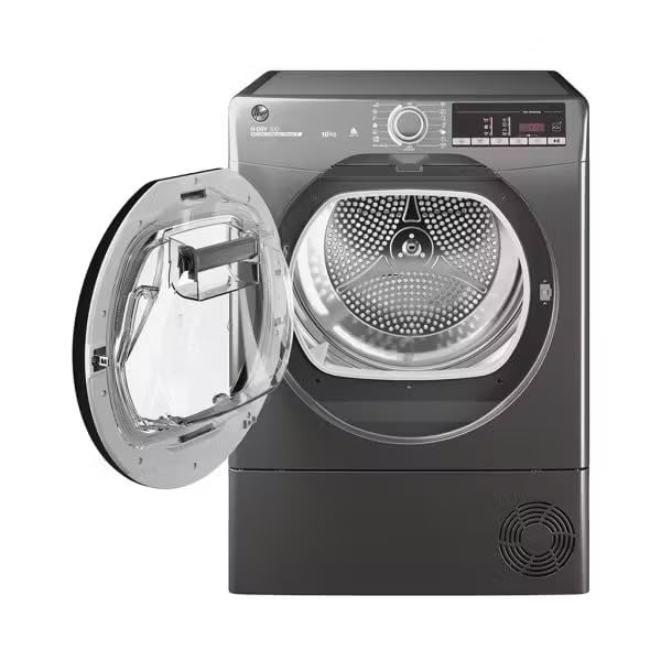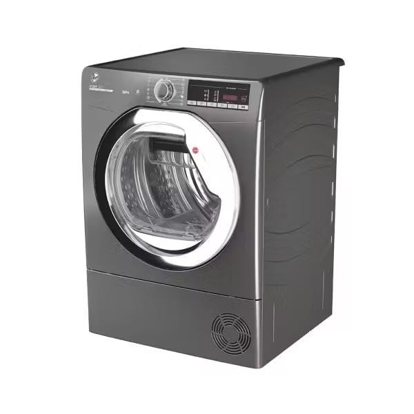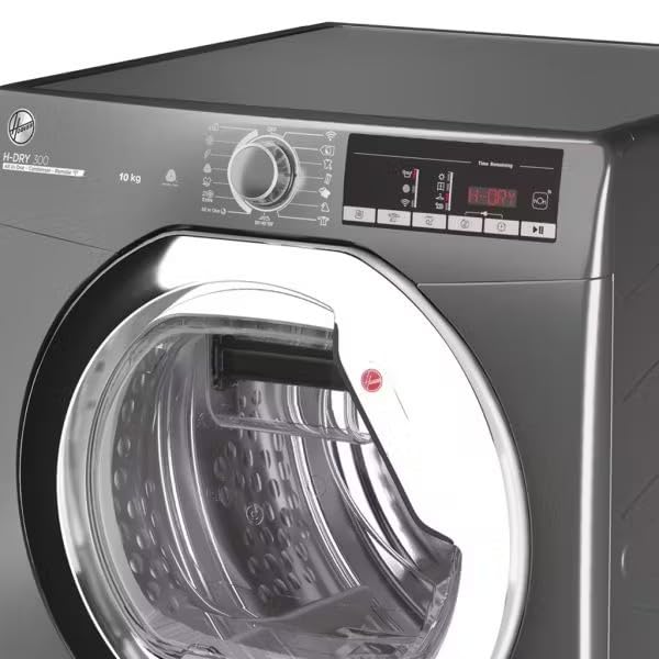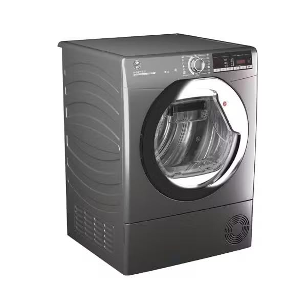 Hoover - هوفر مجفف ملابس بتحميل امامي مع نظام مكثف سعة 10 كجم برنامج تحميل XXL للنظافة، تقنية الكل في واحد، غسيل سريع، سهل الكي ومضاد للحساسية، واي فاي، فضي، HLEC10TCER-ELA