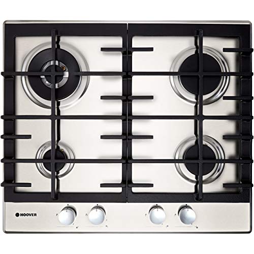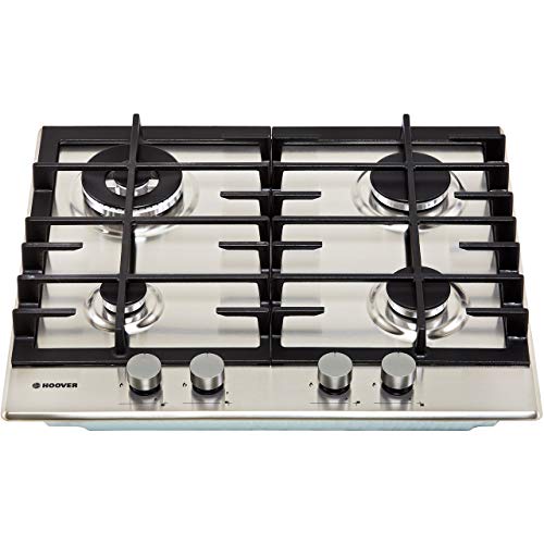 Hoover - بوتاجاز مسطح بلت ان 4 شعلة غاز من هوفر HHG6BR4MX، 60 × 60 سم - فضي