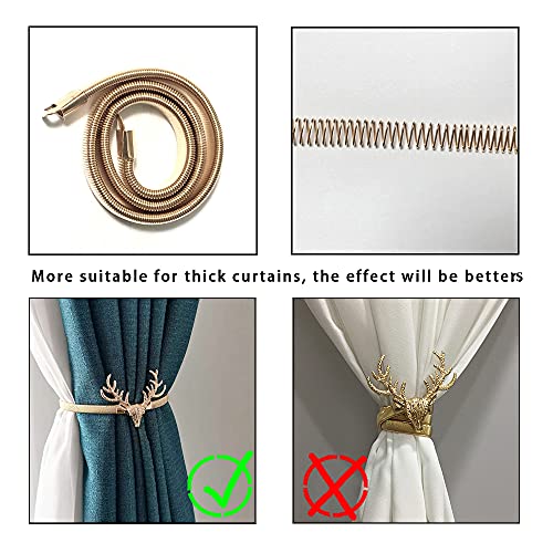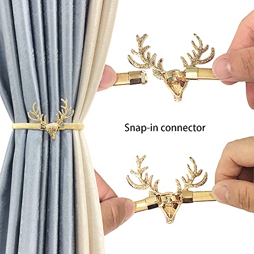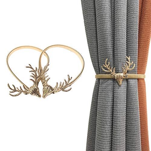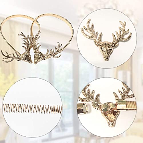 HOPABTO - اربطة خلفية للستائر من خليط معدني بتصميم قرن غزال، مع خطافات تثبيت وحبل معدني قابل للتمدد، زينة لستائر النوافذ السميكة من هوبابتو، مجموعة من قطعتين - ذهبي