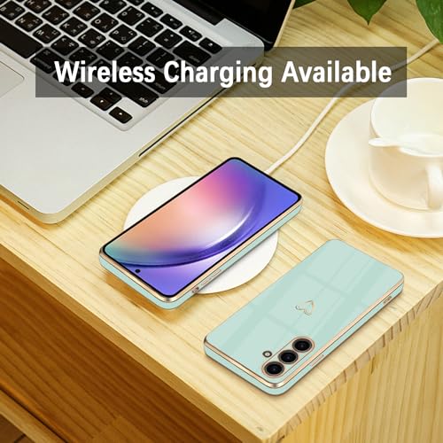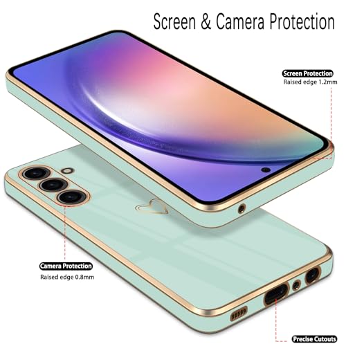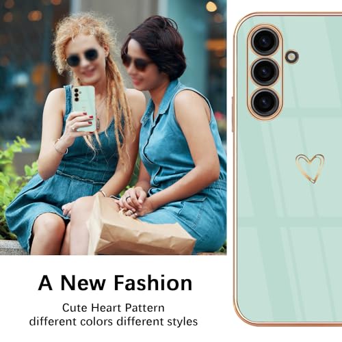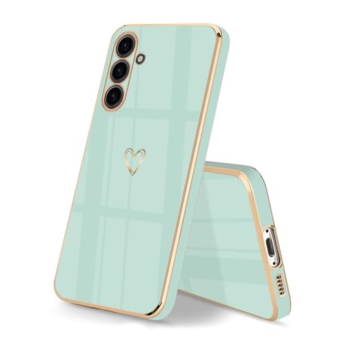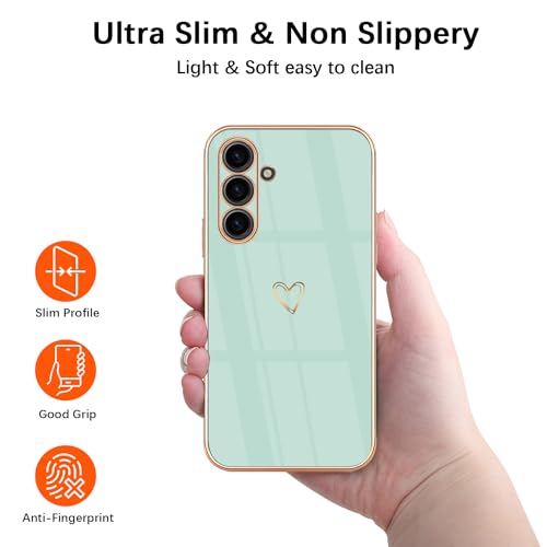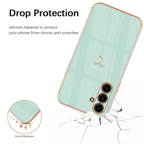 HopMore - جراب لموبايل سامسونج جالاكسي S23 اف اي شبكة الجيل الخامس 5G من هوب مور، جراب سيليكون مضاد للصدمات بتصميم لطيف على شكل قلب، جراب من السيليكون والبولي يوريثين الحراري الناعم رفيع جدا، أخضر مينت