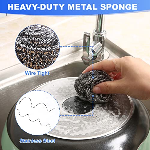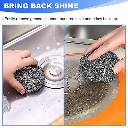 - [جودة عالية]: أدوات تنظيف المطبخ مصنوعة من الستانلس ستيل، مع تصميم حلزوني داخلي، قوي ومتين. ليس من السهل أن تصدأ، وليس من السهل إيذاء يديك، وهي مناسبة لأدوات مائدة المطبخ والأواني والمقالي. إنها مساعد جيد لتنظيف مطبخك.