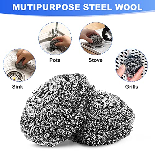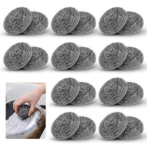 Hopwel - أدوات التنظيف المصنوعة من الستانلس ستيل على شكل بكرة صوف، سهلة التنظيف، التنظيف القوي للمطبخ عن طريق الفرك، تستخدم للأطباق والأواني والمقالي والأفران، مجموعة من 20 قطعة