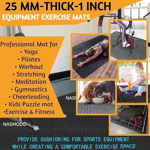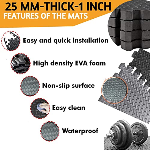 Horianzo - سجادة أرضية من هوريانزو لصالة الألعاب الرياضية للتمارين الشاقة، سجادة تمارين بنمط بازل كبلاط متشابك من فوم ايفا، سجادة مطاطية واقية للصالة الرياضية المنزلية، 4 قطع، 1 بوصة/ 25 ملم (أسود، 4)