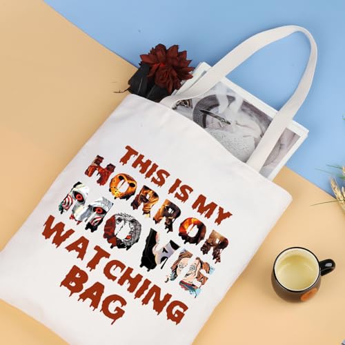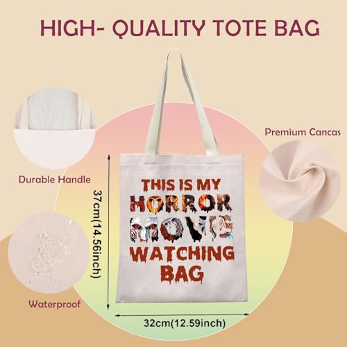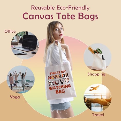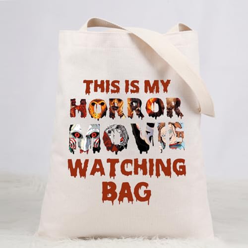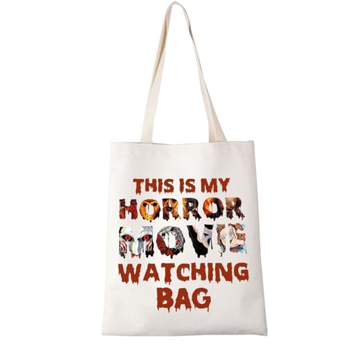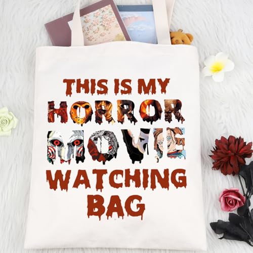 LEVLO - حقيبة حمل قماشية بتصميم فيلم الرعب هدية لمحبي الافلام المخيفة هدية رعب للنساء حقيبة تسوق فيلم This Is My Horror Movie