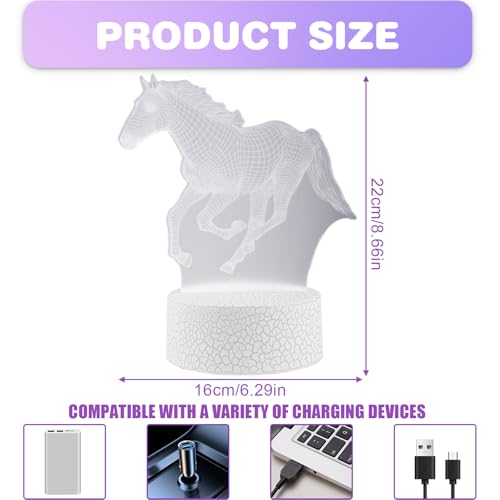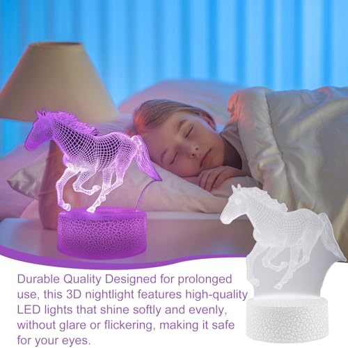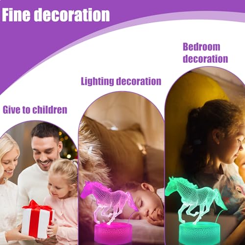 GOMETY - مصباح ليلي على شكل حصان للاطفال، مصباح LED لغرفة الاطفال، مصباح خيول ثلاثي الابعاد للفتيات، مصباح ليلي بجهاز تحكم عن بعد، 16 لون متغير قابل للتعتيم، هدايا للبنات والاولاد وغرفة المعيشة وغرفة النوم