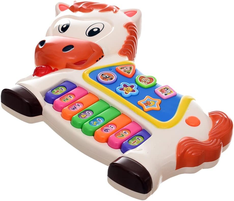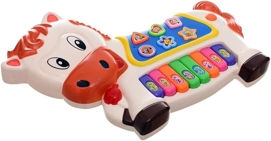 Generic - بيانو على شكل حصان للأطفال، لعبة موسيقية تعليمية مع 8 مفاتيح ملونة و6 أزرار أصوات حيوانات، مناسب للأطفال من عمر 3 سنوات فما فوق