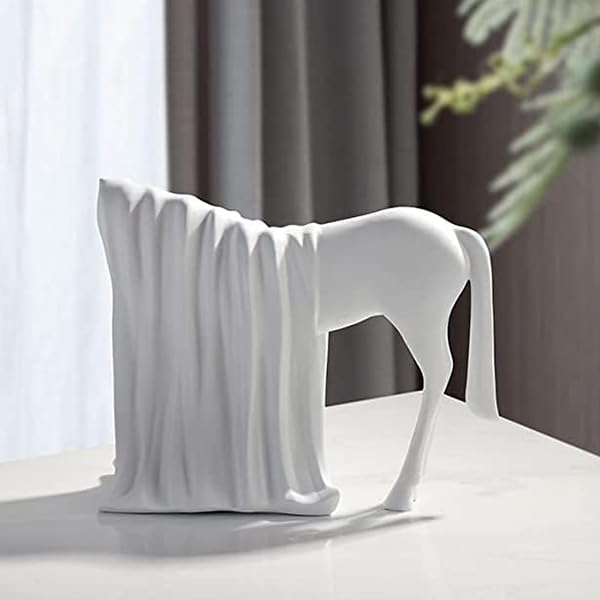 - تصميم فني: يتميز بتصميم فريد من نوعه على شكل حصان مدمج بسلاسة مع تفاصيل منحوتة تشبه القماش باللون الأبيض النقي