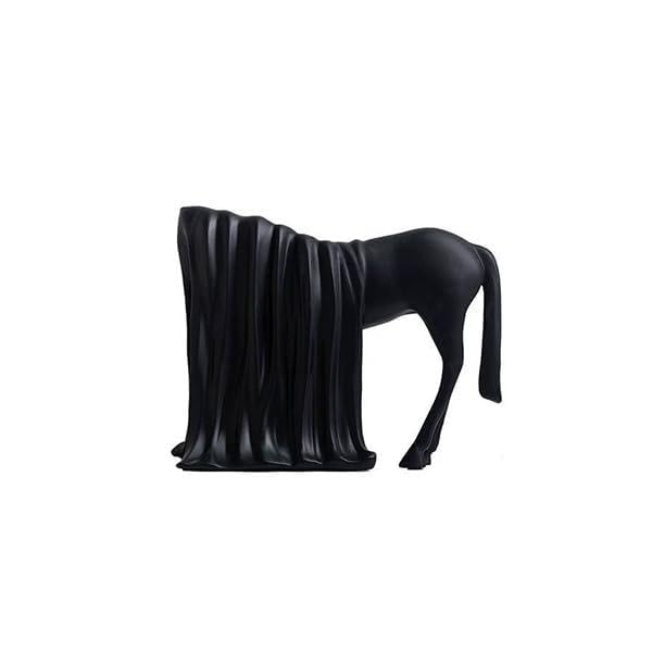 Generic - تمثال حصان مزين بنقوش قماشية، يجمع بين البساطة والإبداع. النحت يجعله يبدو كما لو أن الحصان مغطى بقطعة قماش تنثني بأناقة على جسمه،