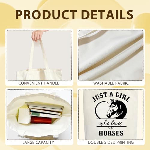 CMHIE - شنطة يد كبيرة توت قماش للنساء مناسبة كهدية لمحبي الخيول، شنطة كبيرة للهدايا والشاطئ والتسوق، شنطة كتف قابلة لإعادة الاستخدام للبقالة - 06