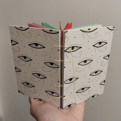 دفتر ملاحظات مصنوع يدويا مقاس A5 بتصميم عين حورس، ورق ملون، 82 صفحة، مرسوم يدويا ومثبت باليد