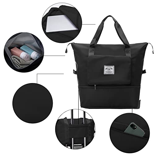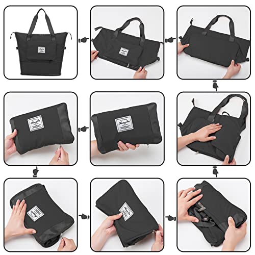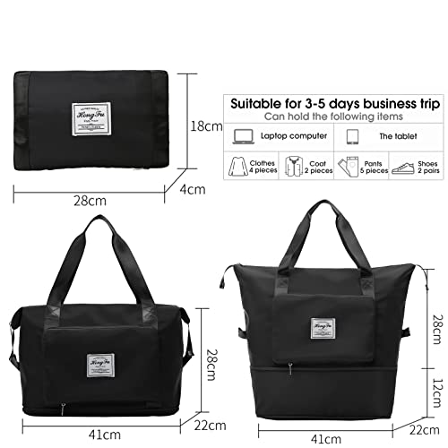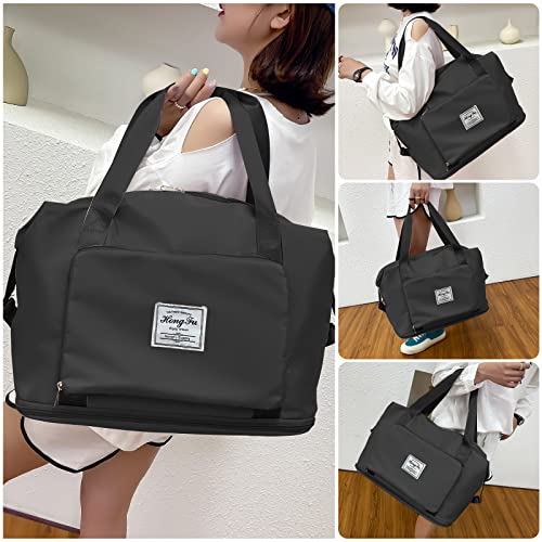 Hoseay - شنطة رياضية دفل قابلة للطي ومقاومة للماء وخفيفة الوزن مع جيوب رطبة مناسبة للجنسين من اجل السفر وصالة الالعاب الرياضية والمدرسة والعطلة ولممارسة اليوجا والتمارين الخارجية من هوسي, أسود، اوكسفورد