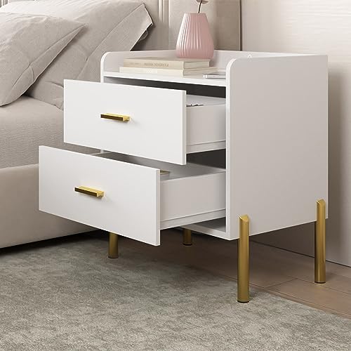 HOSEOKA - مجموعة طاولات جانبية مكونة من قطعتين، مصممة على طراز منتصف القرن الحديث ونمط ريفي بقاعدة شحن ومكان للتخزين، مناسبة لمنزل المزرعة، طاولة جانبية للسرير بدرجين، أبيض، خشب مُصنع
