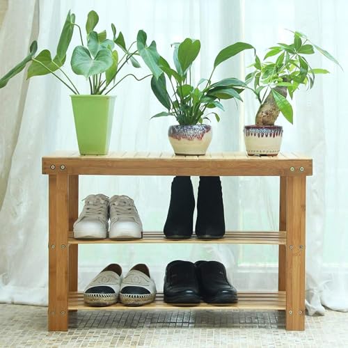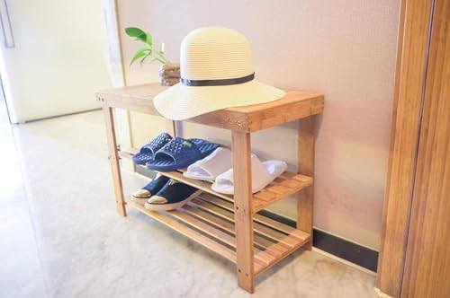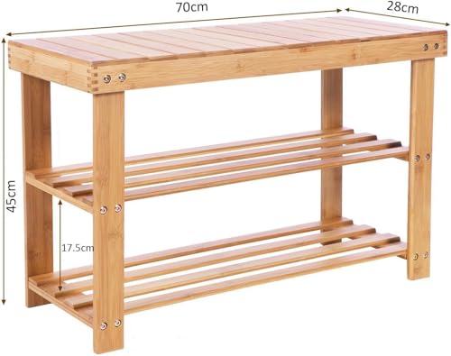 Hossejoy - مقعد أحذية من الخيزران من هوس جوي، منظم تخزين من 3 طبقات، منظم أرفف تخزين الأحذية، مثالي للمدخل وغرفة المعيشة والرواق (70 × 28 × 45 سم)