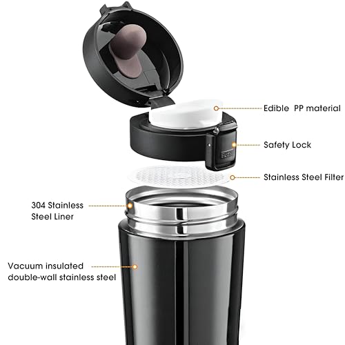- تم تصميم الكوب مع وضع سهولة الاستخدام في الاعتبار، ويتميز بتصميم مبتكر مانع للتسرب وعزل يتضمن مشبك أمان على الغطاء. يضمن الفتح بنقرة واحدة سهولة الوصول إلى مشروباتك المفضلة، بينما يقوم نظام الإغلاق المحكم بقفل الحرارة بفعالية، مما يتيح لك الاستمتاع بالمشروبات الساخنة أو الباردة دون القلق من الانسكاب. بالإضافة إلى ذلك، تعزز قاعدة السيليكون غير القابلة للانزلاق الإمساك وتحمي الأسطح من التلف.