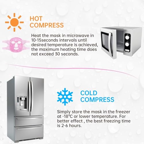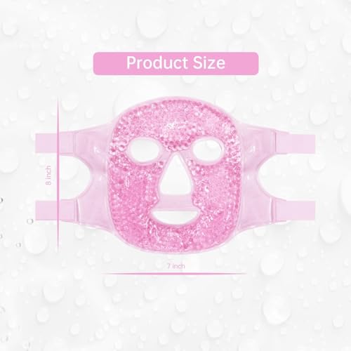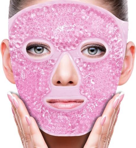 Generic - قناع جل علاجي ساخن وبارد للوجه – لتخفيف الصداع وانتفاخ العينين والهالات السوداء، يغطي الوجه بالكامل، يعزز الاسترخاء والعناية بالبشرة (وردى)