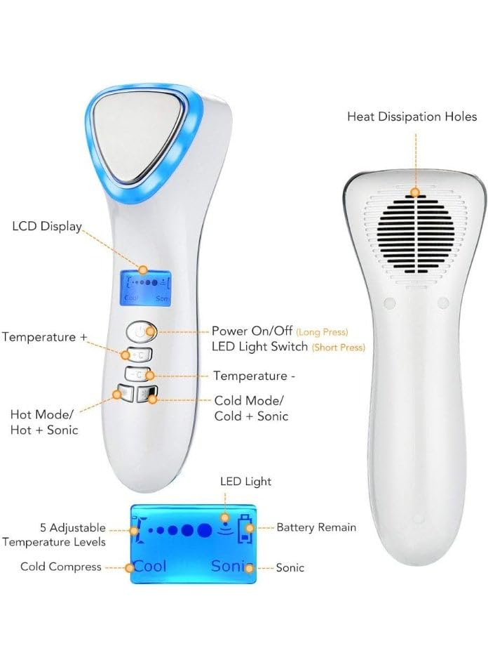 Generic - جهاز العناية بالبشرة الساخن والبارد D002 - جهاز تدليك الوجه مع العلاج بالتسخين والتبريد للتنظيف العميق وشد المسام ومكافحة الشيخوخة - اداة تجميل منزلية محمولة