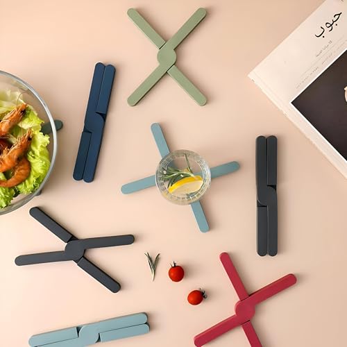 - لا يعزز التصميم القابل للطي المتقاطع الثبات فحسب، بل يمنع الانزلاق بشكل فعال أثناء الاستخدام، مما يضمن بقاء الأواني الساخنة أو الأطباق في مكانها بشكل آمن، مما يقلل من الانسكابات العرضية أو الحوادث.