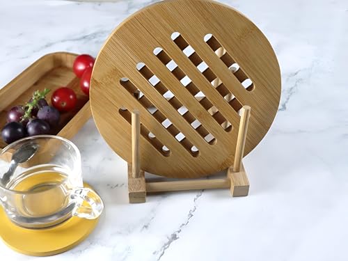 Generic - حامل اواني ساخنة - قاعدة متينة من خشب الخيزران مع ميزات مقاومة للانزلاق ومقاومة للحرارة، مثالية لدعم ادوات المطبخ الساخنة والاطباق ذات الشكل الابداعي. (الشكل الثاني)