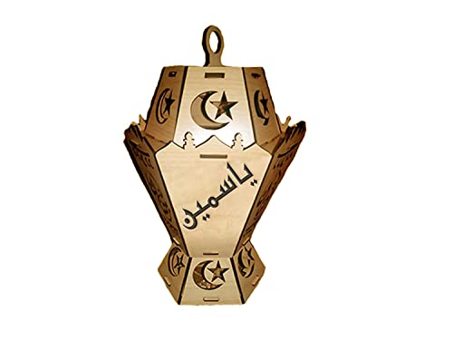 Hot-print - فانوس خشب محفور ليزر بوحدة اضاءة 35 سم باسم ياسمين