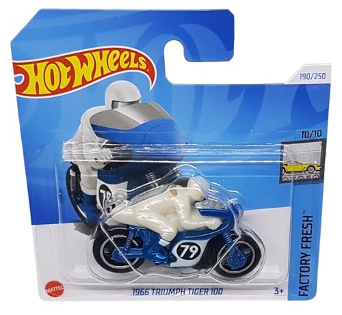 Hot Wheels - موتوسيكل 1966 ترايمف تايجر 100 - إصدار فاكتوري فريش 10/10 - HTD43 - بطاقة قصيرة - أزرق - ماتيل 2024 - مقياس 1:64 من هوت ويلز