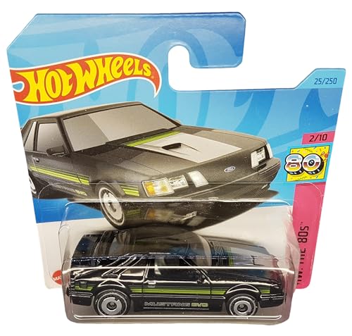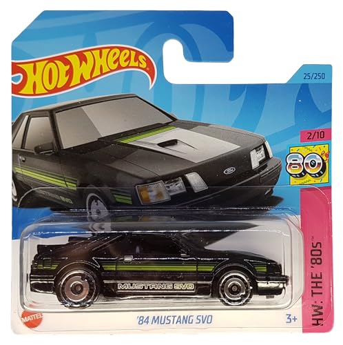 Hot Wheels - مجسم سيارة فورد موستانج SVO موديل´84 - موديل الثمانينات 2/10 - HKJ60 بمقياس 1:64 مع بطاقة قصيرة من هوت ويلز، لون أسود - ماتيل 2023