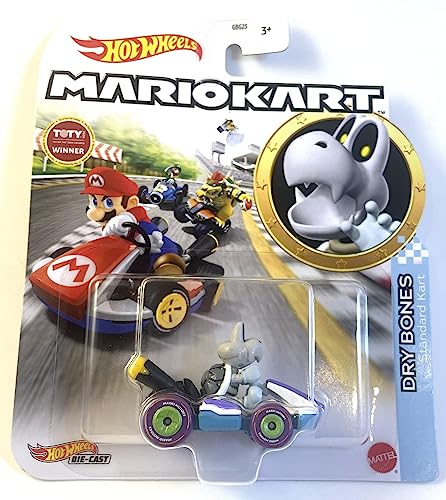 Hot Wheels - سيارة ماريو كارت قياسية مع شخصية دراي بون - توتي - تُشحن مغلفة بغلاف فقاعي داخل صندوق بحجم مناسب من هوت ويلز