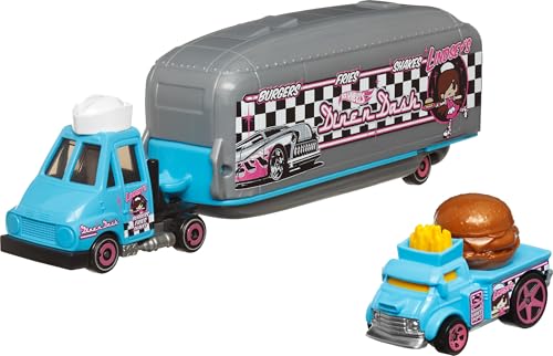 Hot Wheels - لعبة سيارة وشاحنة، سوبر ريجز بمقياس 6.25 سم وناقل شبه شاحنة متطابقة (قد تختلف الأنماط) من هوت ويلز