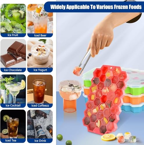 Generic - قالب ثلج فندقي الخلايا 🧊🐝 (٣٧ خلية) - عرض متعدد الاستخدام 🍋🍫- غطاء شفاف - صُنع من السيليكون عالي الجودة👌👌- يتحمل الفريزر والميكرويف وال - من جينيريك