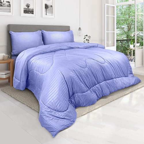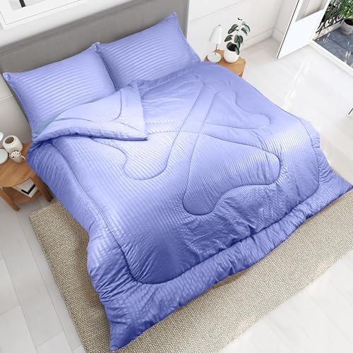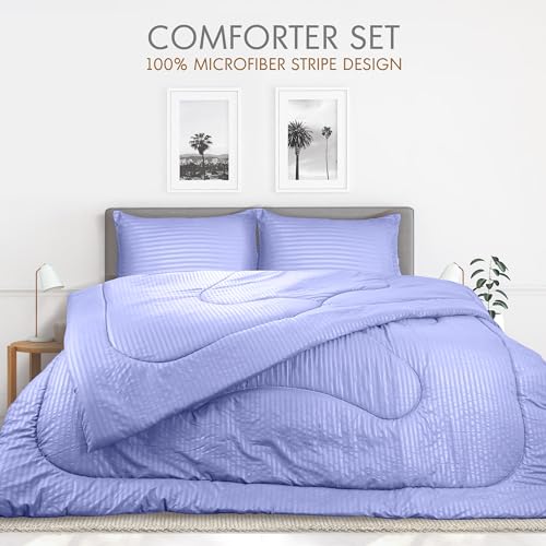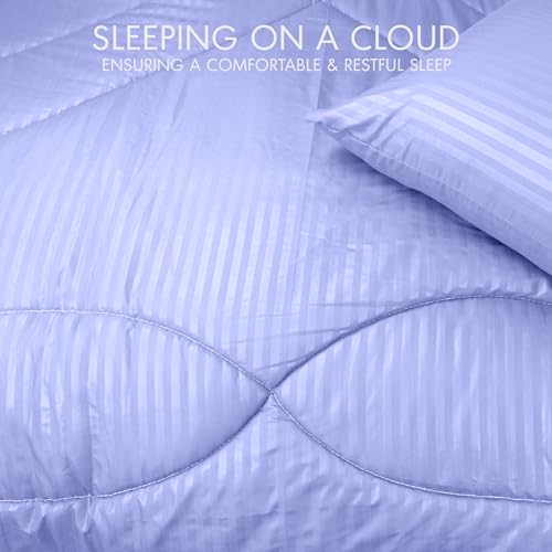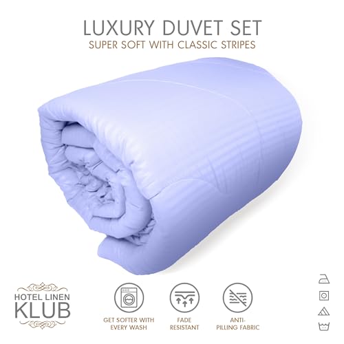 Hotel Linen Klub - طقم لحاف بديل من الزغب من قماش مايكروفايبر مخطط ناعم فائق النعومة، وحشوة من الفايبر الناعم بوزن 200 جرام لكل متر مربع من هوتل لينين كلوب، مقاس: كينج 2.40 متر× 2.60 متر، لون: لافندر.