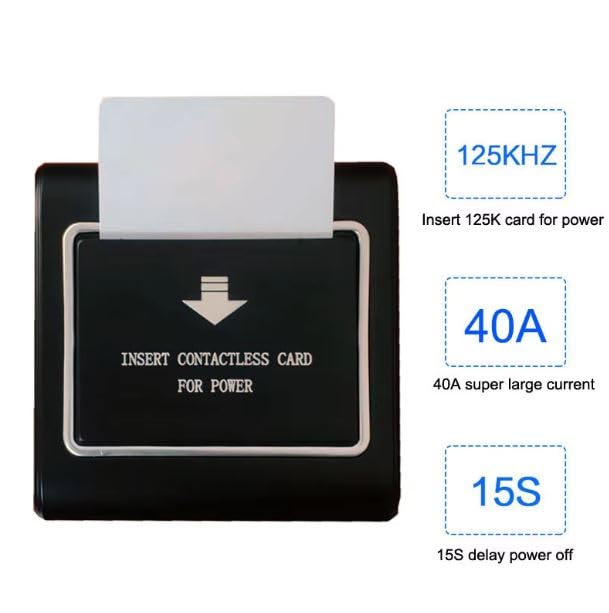 Generic - مفتاح توفير الطاقة للفنادق، 40 امبير، لوحة سوداء تدعم بطاقات ID/T57/EM4305 بجهد واسع من 80 إلى 240 فولت، 125 كيلوهرتز، 40 امبير مع تأخير 15 ثانية