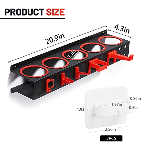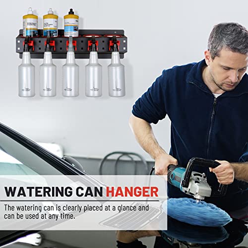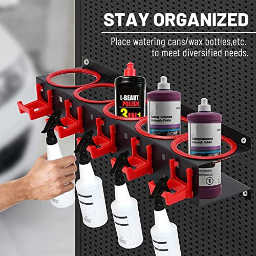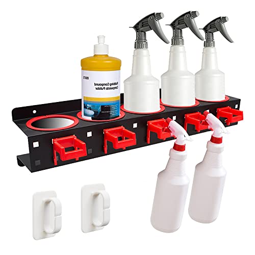 Hotfillere - رف تخزين زجاجات البخاخ حامل منظم الرش يثبت على الحائط مع 5 فتحات و5 خطافات تعليق ملحقات متجر تجميل السيارة ادوات التنظيف التلقائي خليط معدني من الستيل والبلاستيك اسود واحمر