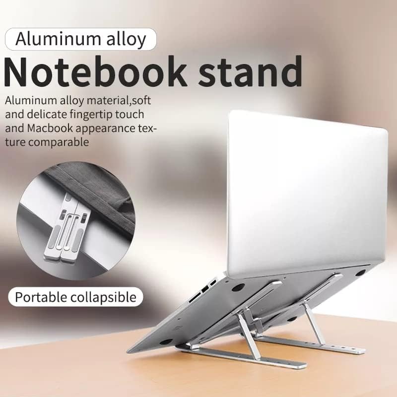 - هيكل متين: مصنوع من معدن عالي الجودة من أجل ثبات ودعم يدوم طويلاً، يضمن التصميم القوي أن اللاب توب أو التابلت الخاص بك آمنًا.