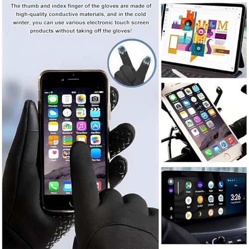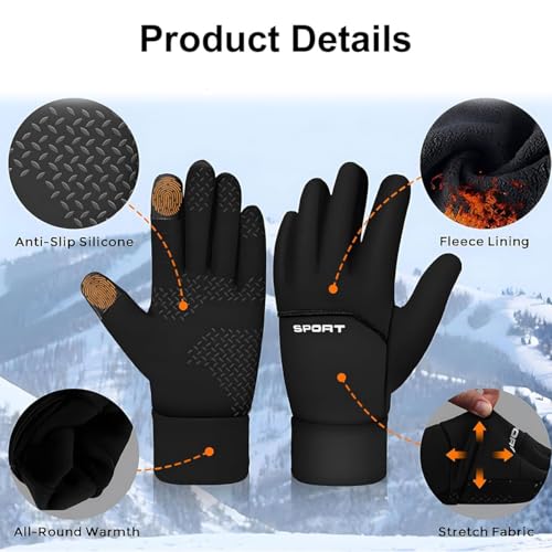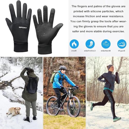 HOTMNTY - قفازات حرارية شتوية تعمل باللمس من هوتمنتي، قفازات دافئة ومقاومة للرياح ومضادة للانزلاق، للركض، قفازات للتزلج والركض للنساء والرجال، لون أسود، زوج واحد