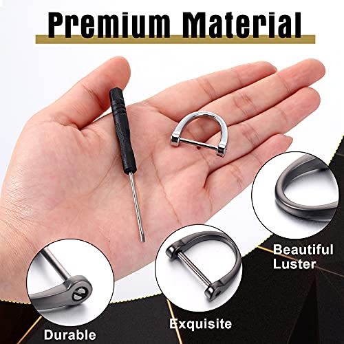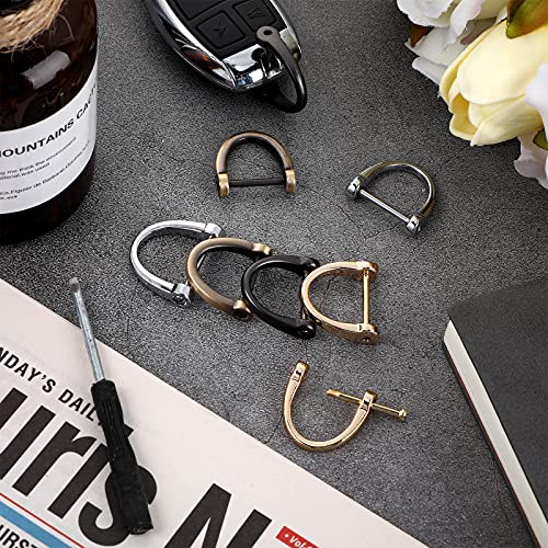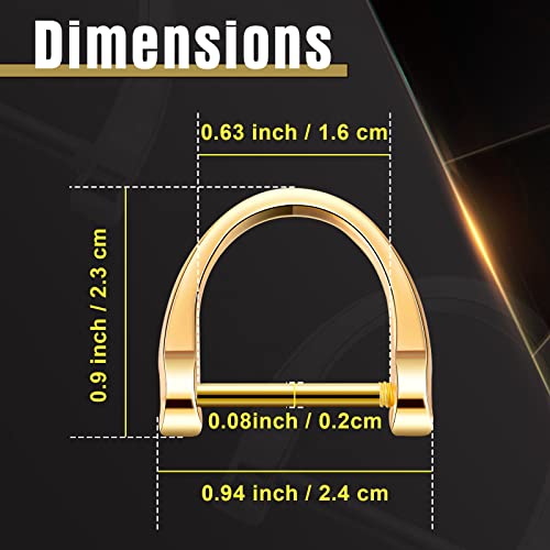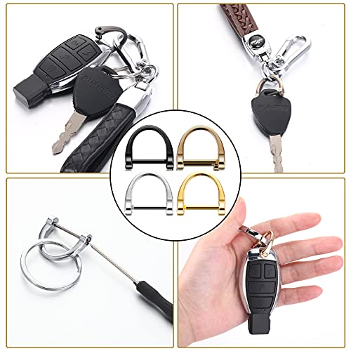 Hotop - 16 حلقة على شكل حرف D مع قفل لولبي معدني فضي ذهبي على شكل حرف U من هوتوب، حلقات على شكل حدوة حصان، حلقات على شكل حرف D لمفاتيح السيارة والفوب والمحفظة وشنط الكروس بودي والحرف اليدوية الجلدية