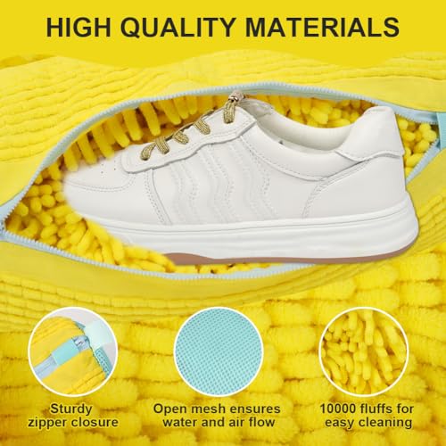 HOTUT - شنطة أحذية للغسالة من هوت وت، أكياس غسيل الأحذية، شنطة تنظيف، شنطة غسيل شبكية للأحذية والسفر والغسيل والمجفف - أصفر
