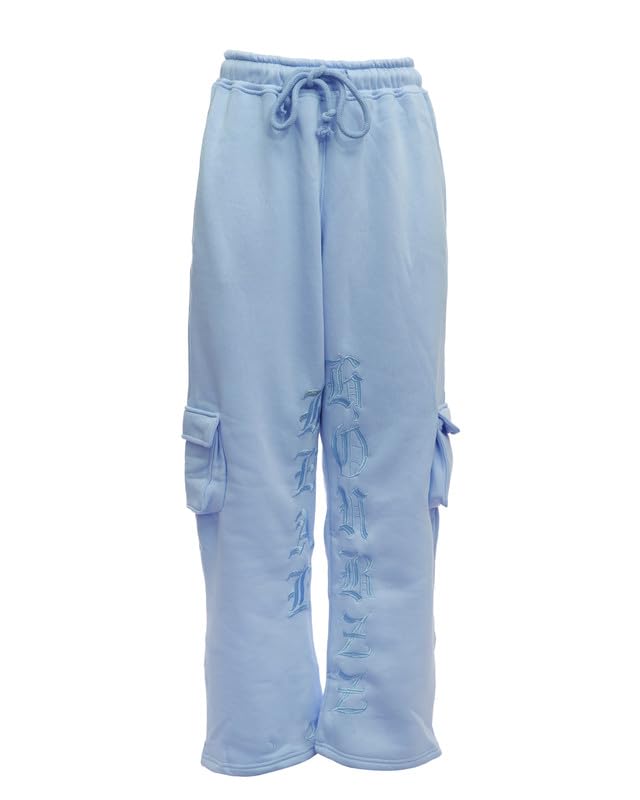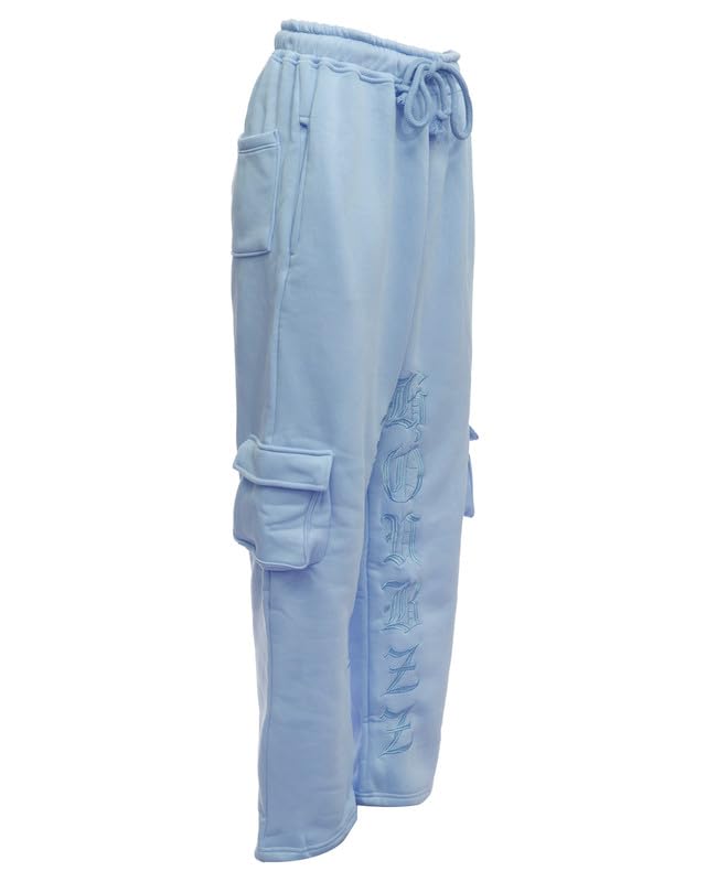 Houbizzz - بنطلون رياضي كارجو قطني للجنسين مع شعار مطرز وجيوب جانبية من هوبيز