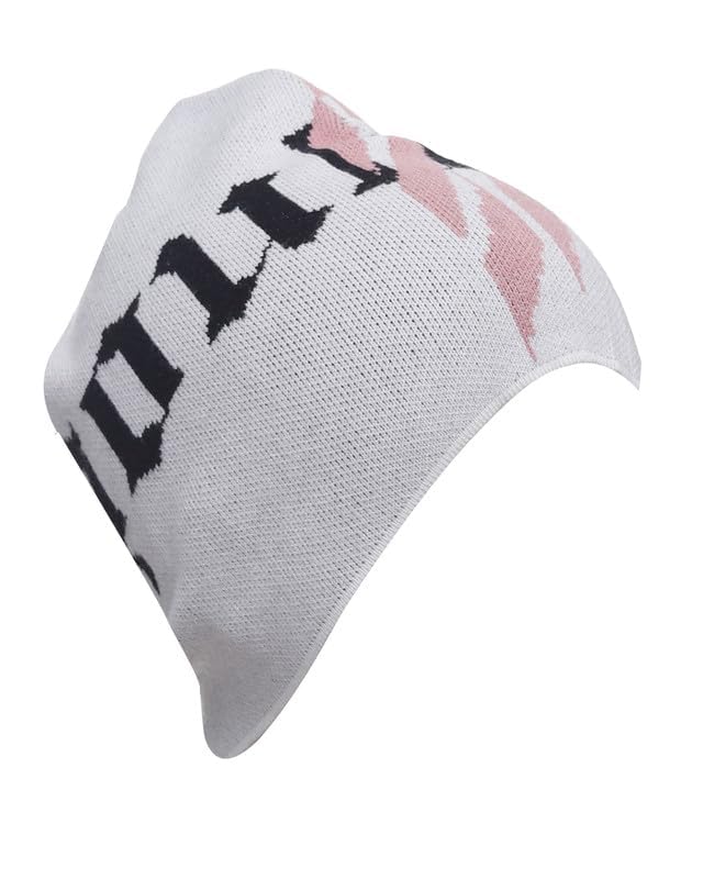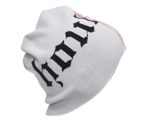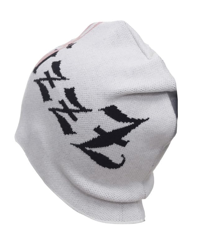 Houbizzz - طاقية صغيرة للشتاء منسوجة باللون الأبيض تتميز بنمط خط ياباني أسود، طاقية دافئة قابلة للتمدد للجنسين من هوبيز