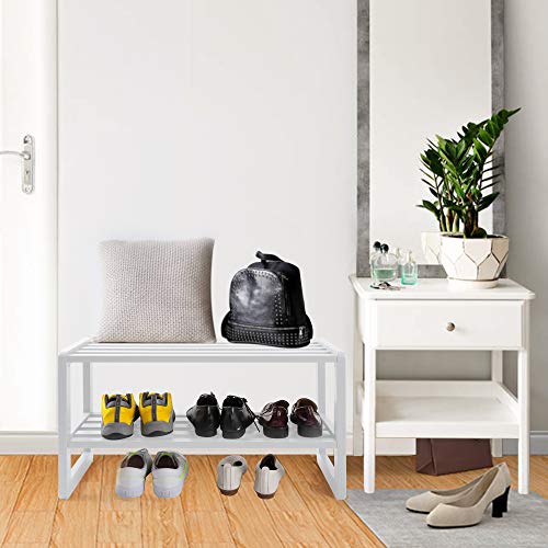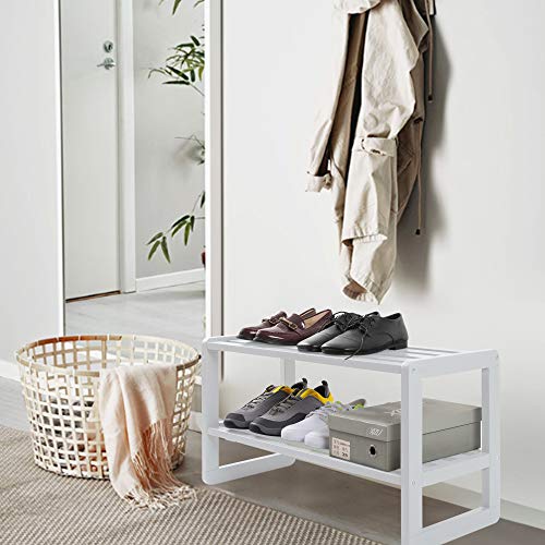 HOUCHICS - رف أحذية من الخشب قائم بذاته بمستويين للجمع بين وظيفة التخزين والتنظيم مع مقعد مريح لمدخل المنزل من هوتشيكس