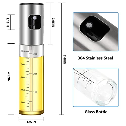 HOUEVIYS - بخاخ زيت للطبخ والمقلاة الهوائية - بخاخ زيت زيتون سعة 100 مل مع غطاء من الفولاذ المقاوم للصدأ للخبز والتحميص والقلي من هويفيز