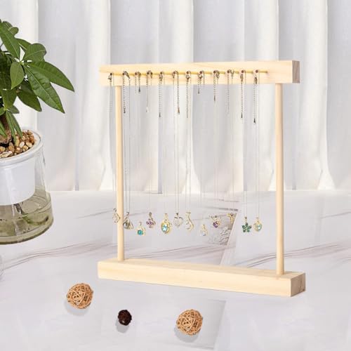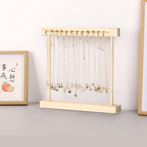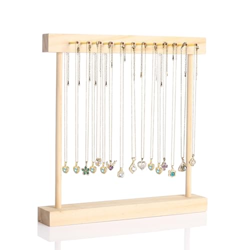 HOUKANWE - حامل عرض المجوهرات من هوكانوي عقد مع 24 خطاف خشبي لسطح الطاولة لبيع منظم ذهبي لتعليق القلائد والاساور والساعات تصميم