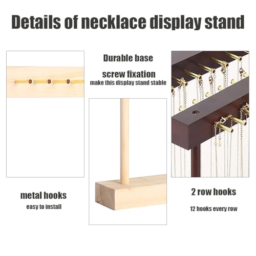- 【حامل مجوهرات مكون من 24 خطاف】يحتوي حامل المجوهرات هذا على 24 خطافًا لتعليق القلائد، و12 خطافًا في صف واحد، مما يجعل قلاداتك مرتبة وليس من السهل فقدانها.