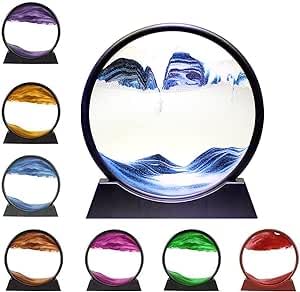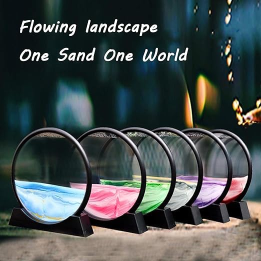 Generic - الساعة الرملية المتحركة ، صورة فنية بإطار دائري، عرض حركة الرمال المتحركة، رسم رملي متدفق للمناظر الطبيعية للاسترخاء، ديكور لسطح المكتب، المنزل , يمكن تقديمها كهدية فى المناسبات _ متعددة الالوان
