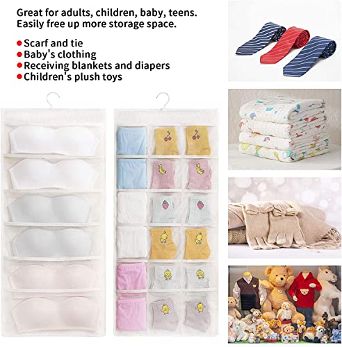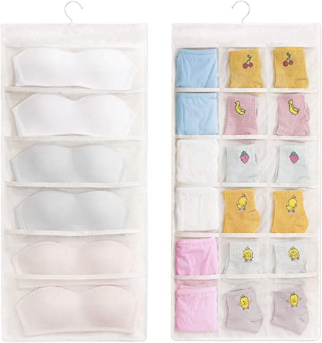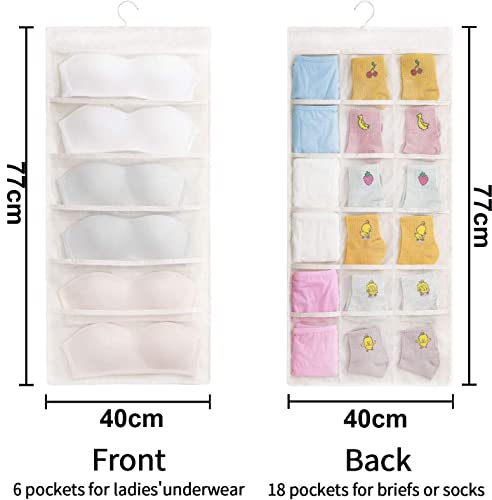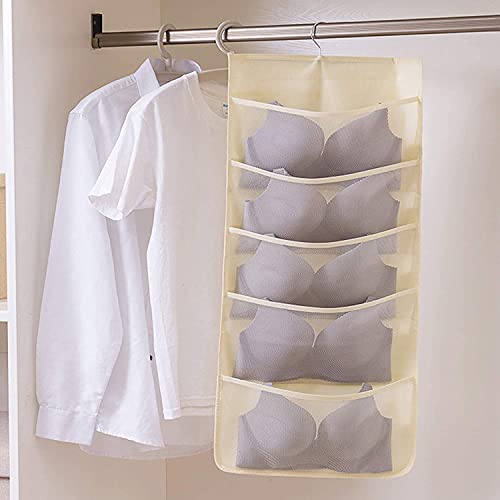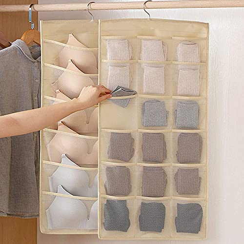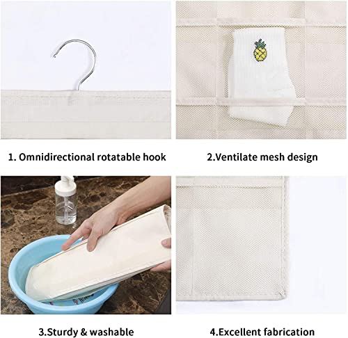 House of Quirk - منظم تعليق للخزانة مع 24 جيب شبكي وشماعة معدنية دوارة، أكياس تخزين مزدوج الجوانبة، شنطة موفر للمساحة لتخزين حمالات الصدر والملابس الداخلية والبناطيل والشرابات من هاوس اوف كويرك (لون بيج)