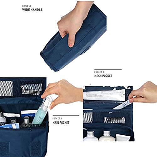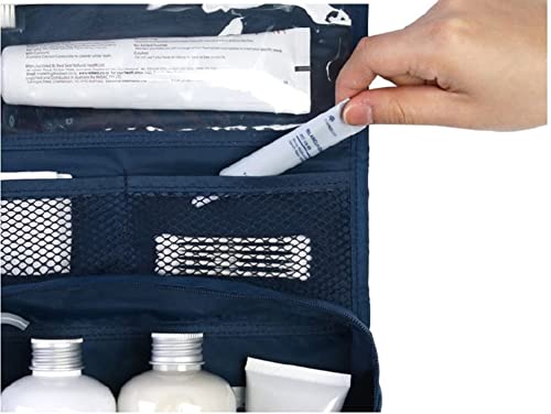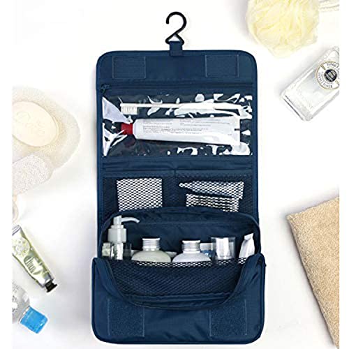 House of Quirk - شنطة ادوات زينة معلقة للسفر من هاوس اوف كويرك مستحضرات تجميل محمولة منظمة للمكياج للنساء والبنات أزرق داكن L بلاستيك