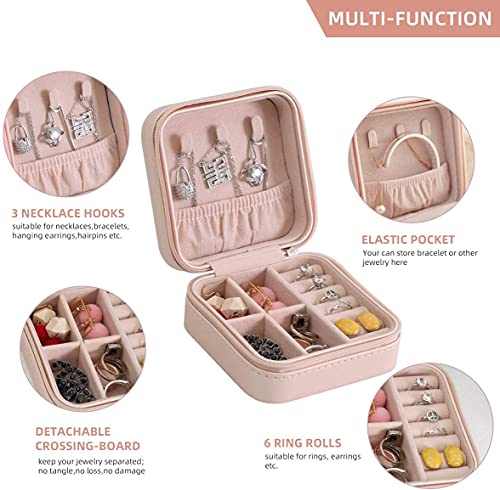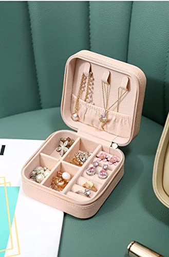 House of Quirk - هاوس اوف كويرك صندوق مجوهرات صغير من الجلد الصناعي بوراتبل حافظة محمولة للسفر للخواتم والقلادة والاقراط والقلائد والاساور - زهري جلد صناعي