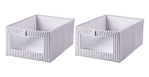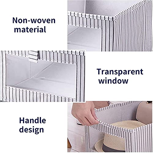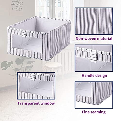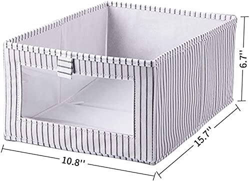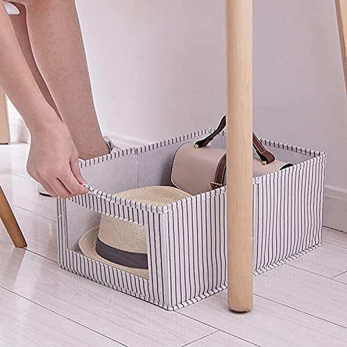 House of Quirk - صناديق تخزين مستطيلة قابلة للطي من هاوس اوف كويرك، منظم قماش للدولاب، طقم من صندوقين تخزين للالعاب بنافذة شفافة وايدي، صناديق رائعة للردهة والمدخل والدواليب، لون رمادي فاتح
