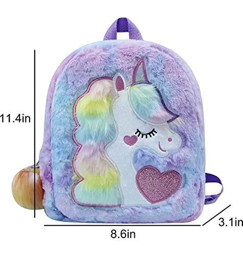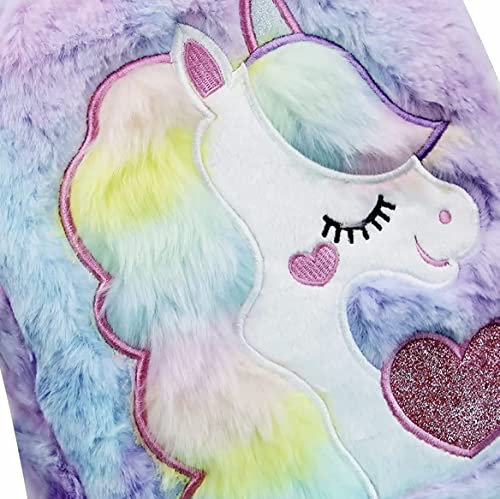 HOUSEHOLD CULTURE - شنطة ظهر لطيفة بنمط يونيكورن من هاوس هولد كالتشر، شنطة ظهر مدرسية بالوان قوس قزح للبنات والاطفال (متعددة)، متعددة الالوان، شنطة فرو بالوان قوس قزح، امريكي