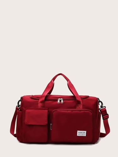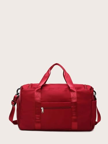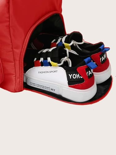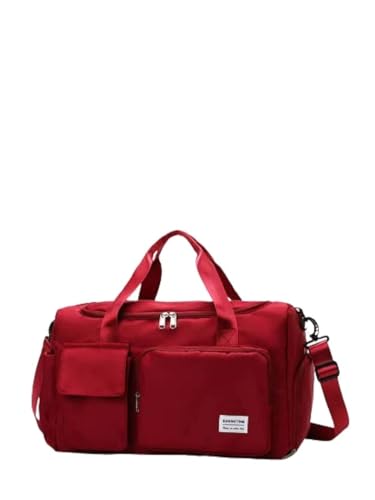 HOUSEHOLD CULTURE - شنطة دفل رياضية كبيرة مقاومة للماء بجيب للملابس الرطبة وجيب للحذاء للنساء من هاوس هولد كلتشر، مناسبة لقضاء ليلة في الخارج وعطلات نهاية الاسبوع والسفر, أحمر، نايلون