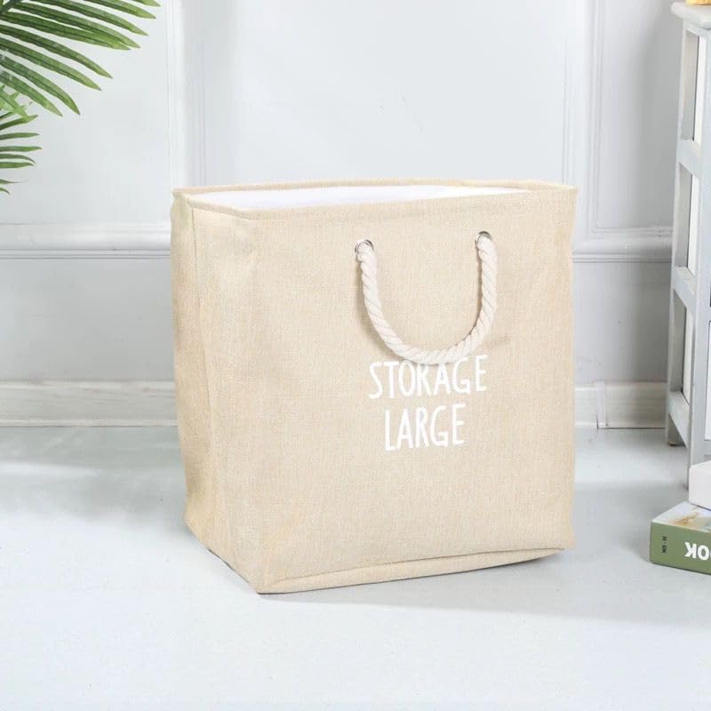 Generic - سلة تخزين قماشية منزلية مربعة قابلة للطي، سلة ملابس متسخة، سلة تخزين محمولة كبيرة وسميكة من الكتان (شكل 3)