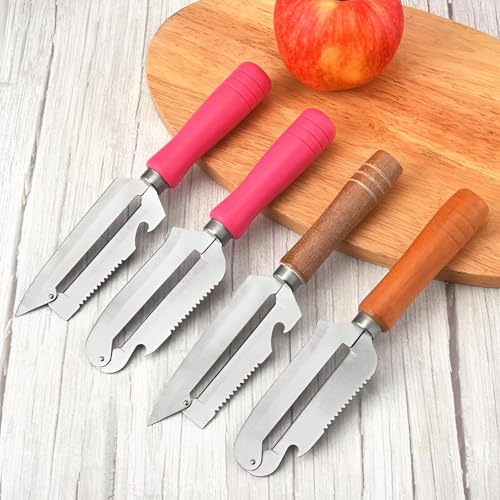 - مجموعة من أربعة سكاكين تقشير متعددة الاستخدامات بمقابض ألوان عشوائية، مما يسمح بسهولة التعرف والاستخدام الصحي للأطعمة المختلفة.